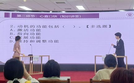 “心直口快(知识抢答)”环节,白一暘同学凭借敏捷的思维和快速的反应能力,对心理学知识题目应答如流,展现了他扎实的知识储备和良好的心理素质,成功晋级下一轮比赛。