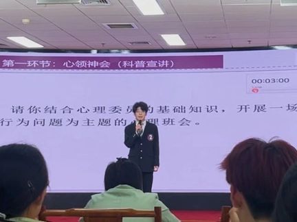 在“心领神会(科普宣讲)”环节,白一暘同学以清晰的逻辑、生动的语言,围绕网络行为问题进行了深入浅出的科普宣讲,他不仅将心理学知识用通俗易懂的方式传达给大家,还结合实际案例提出了许多具有实用性的心理健康建议,充分展示了他在心理健康知识普及方面的能力。