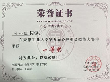 经过三个环节的激烈角逐,白一暘同学凭借在各个环节的出色表现,最终以优异的成绩荣获本次大赛的校级第一名。这一荣誉不仅是对白一暘同学个人能力的高度肯定,也是威廉希尔app 心理健康教育工作的一次重要成果展示。